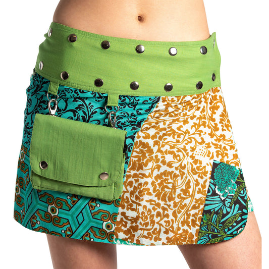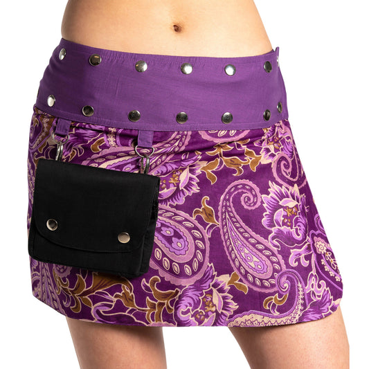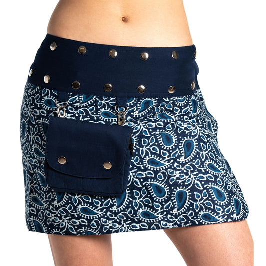 En plus des jupes portefeuille ethniques que tu peux acheter en ligne chez nous, nous proposons également des mini-jupes réversibles. Elles t'offrent deux designs différents et tu peux changer ton look en un clin d'œil. Avec leurs couleurs cool et leur coupe confortable, ces jupes conviennent à toutes les occasions. Et le meilleur ? Elles ont des boutons-pression et une poche amovible pour que tu puisses personnaliser encore plus ton style.